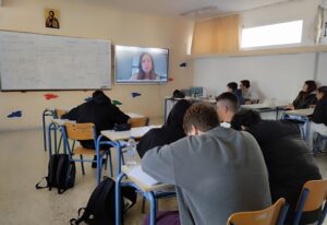 Τα τμήματα Β4 και Α4 συμμετείχαν σε διαδικτυακή συνάντηση με την κ. Βασιλική Σκούρτη, Quality operations project coordinator στο τμήμα διεθνοποίησης της meta Βusiness, με την οποία συζήτησαν για τον επαγγελματικό προσανατολισμό και τις δυνατότητες που δίνει η εκμάθηση ξένων γλωσσών ως προς την αναζήτηση επιτυχημένης επαγγελματικής σταδιοδρομίας. Η δράση υλοποιήθηκε στο πλαίσιο του αναλυτικού προγράμματος σπουδών και του σχεδίου δράσης της αξιολόγησης της σχολικής μονάδας :
